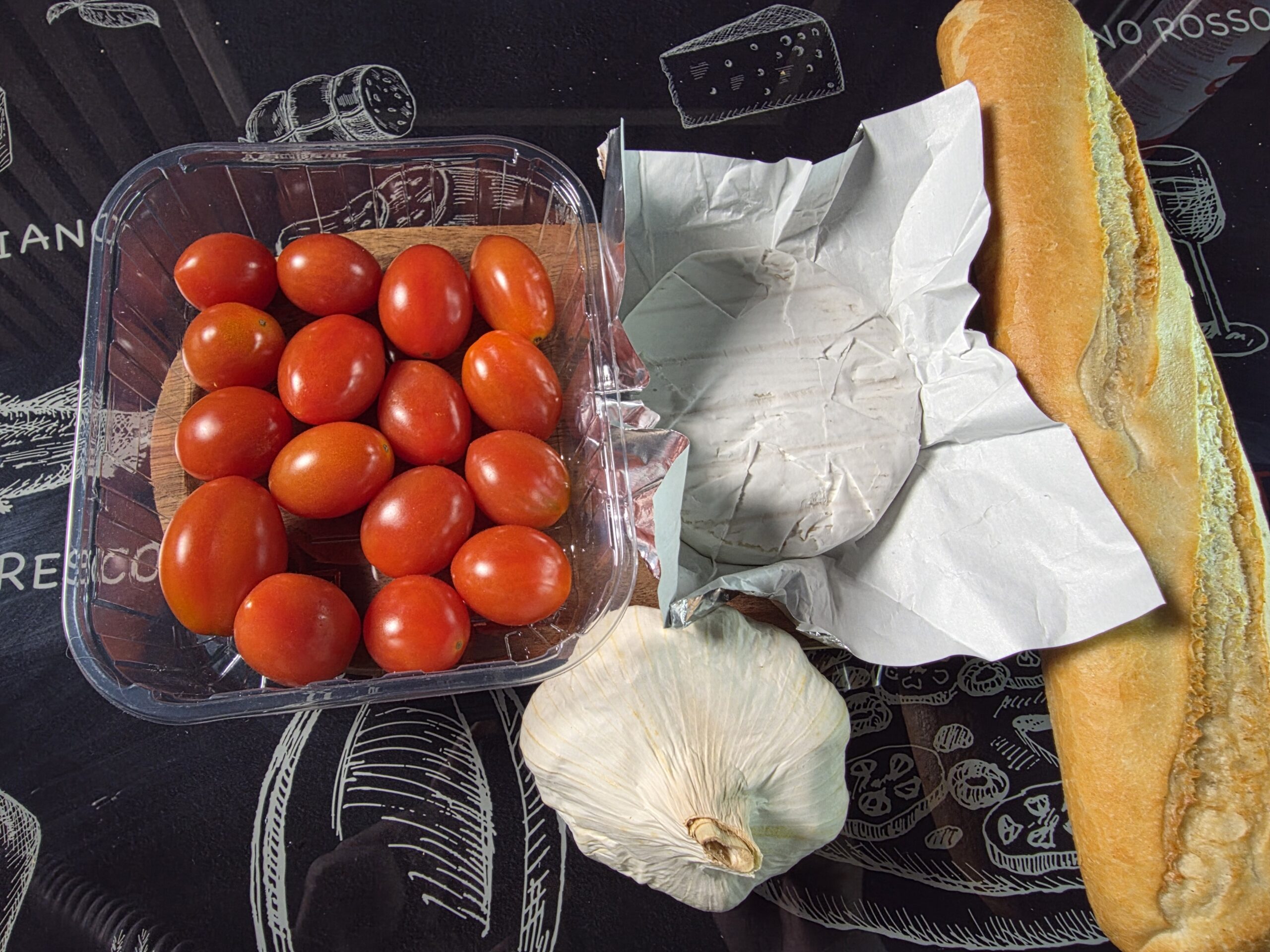 👉 Prečo: Paradajky pustia šťavu a vytvoria prirodzený dip, pečený cesnak bude jemný a sladký.