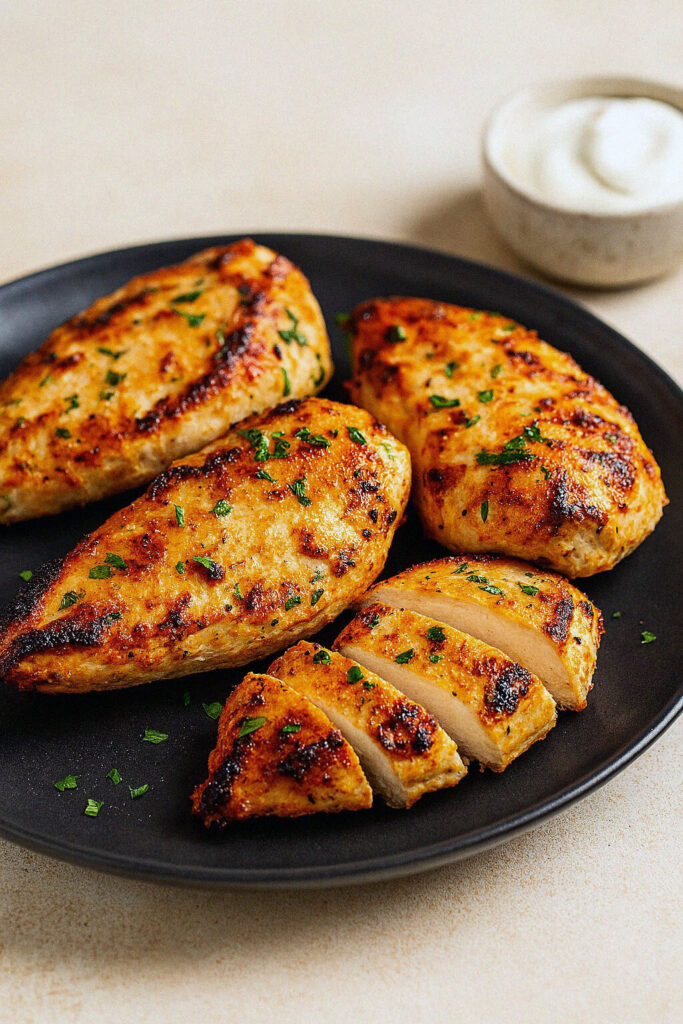 Tento recept je dôkazom, že aj obyčajné kuracie prsia sa môžu premeniť na výnimočné jedlo. Jogurtová marináda ich nielen zjemní a udrží šťavnaté, ale zároveň im dodá príjemnú kyselkavú chuť. Marináda prenikne hlboko do mäsa, ktoré sa po upečení v teplovzdušnej fritéze krásne zatiahne a zostane mäkké vo vnútri aj bez kvapky oleja. Je to ideálne ľahké a rýchle jedlo na obed alebo večeru – výborne sa hodí napríklad k pečenej zelenine alebo čerstvému šalátu.