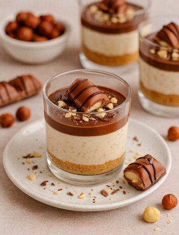 Spája jemný krém z mascarpone a karamelu, čokoládový základ a orieškový chrumkavý topping – presne ako originálny Maxi King, ale v elegantnej „pohárovej“ verzii.