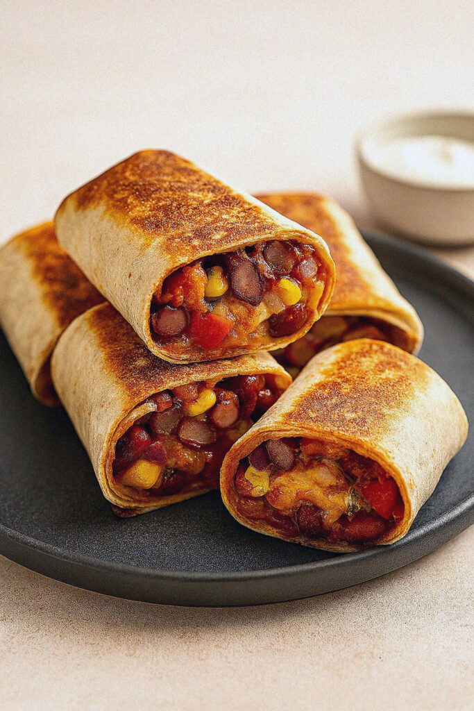 Tieto plnené tortilly s fazuľou sú perfektným spôsobom, ako si rýchlo pripraviť teplé, sýte a zdravé jedlo. V teplovzdušnej fritéze sa upečú krásne dozlata a získajú chrumkavý povrch, zatiaľ čo vo vnútri zostanú mäkké a šťavnaté. Plnka z fazule, kukurice, papriky a syra vytvára dokonalú harmóniu chutí – jemne pikantnú, krémovú a výživnú. Skvelé ako ľahký obed, večera alebo snack na cesty.