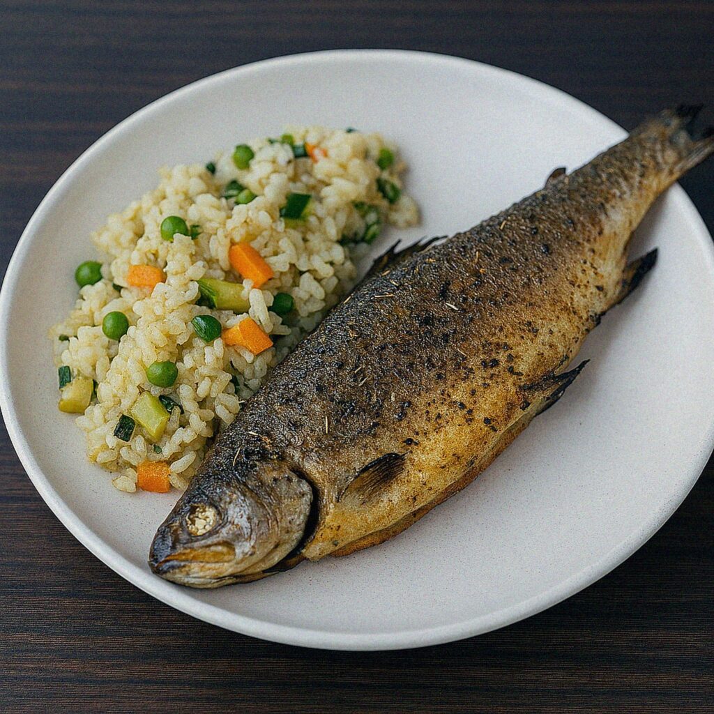 Pstruh je jemná ryba s vysokým obsahom bielkovín a omega‑3 mastných kyselín 🐟. V teplovzdušnej fritéze alebo rúre sa upečie rýchlo, s minimom oleja, pričom zostane šťavnatý. V kombinácii so zeleninovým rizotom vznikne vyvážené jedlo, ktoré je chutné aj nutrične hodnotné. Prajeme vám dobrú chuť. Vaše chrumkavo.sk