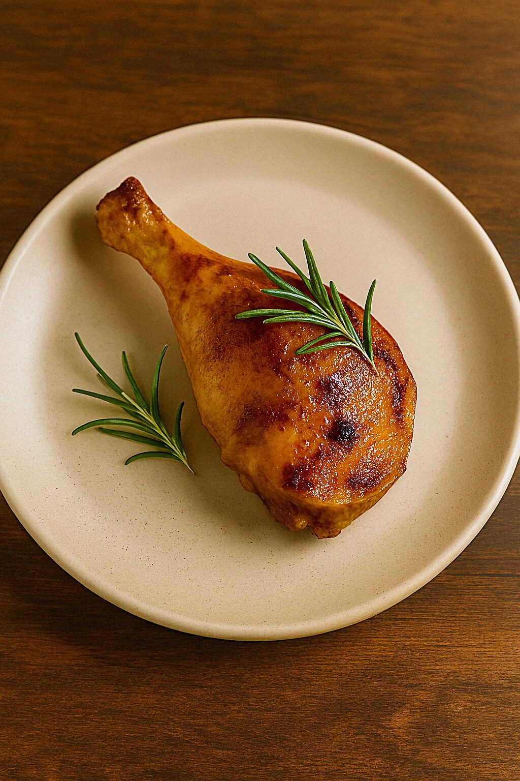 Ak chceš dosiahnuť ešte intenzívnejšiu chuť, vlož pod kožu každej stehnovej časti vetvičku čerstvého rozmarínu a jemne ju potri maslom – výsledok bude voňavý a ešte šťavnatejší.